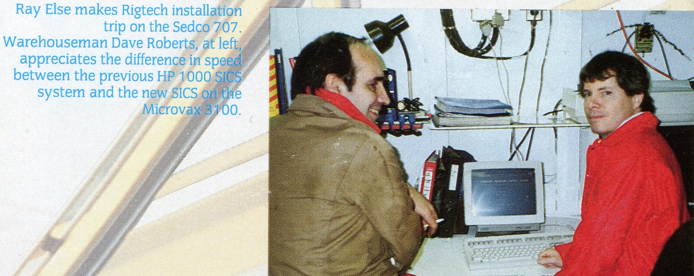 I enjoyed my job with Sedco, despite the commute to downtown. Although I was the newest programmer, I quickly became the lead on our conversion of the Shipboard Inventory Control System (SICS) from the HP1000 computer running the Image hierarchy database to a DEC MicroVax 3100 computer running Ingres Relational Database. And too I got the occasional break, a trip to Nova Scotia or the North Sea to a rig to install the program and train the warehousemen. The more rigs I traveled to, the more I realized the rig hands came in all types – even the roughnecks could be quite educated and cultured. They all coped with being onboard, away from their families, in different ways. My way continued to be – focus on making it as far as the next meal, and each evening I looked forward to the movies in the TV/meeting room.