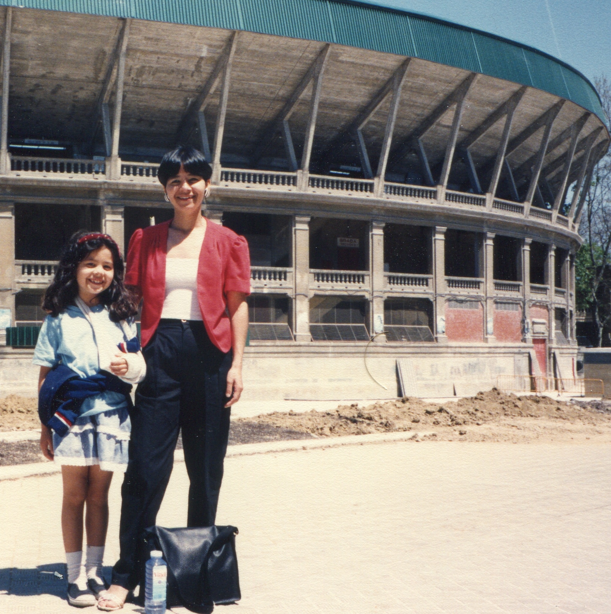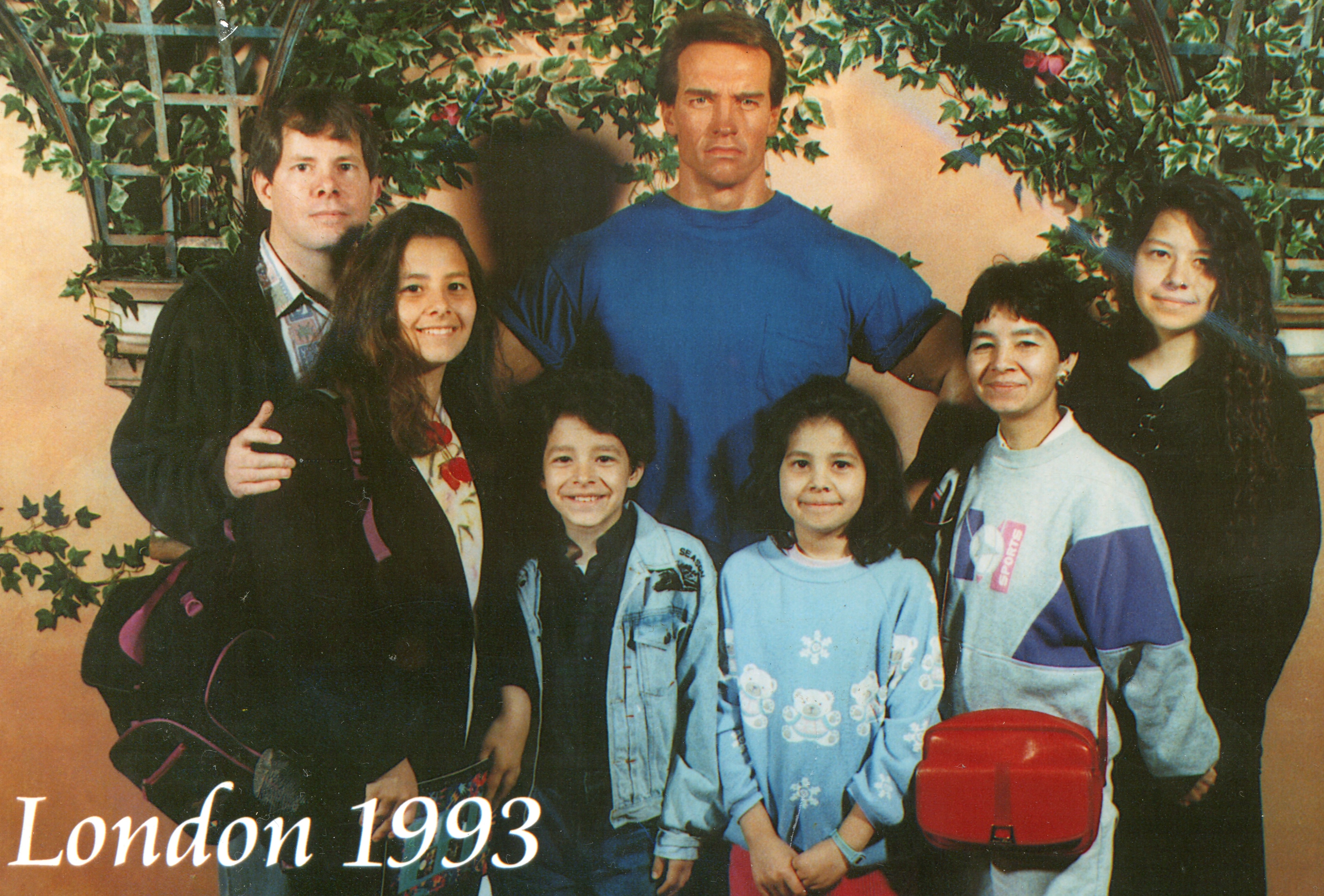 Frances and Veronica visited Pamplona with me in 1991 – here they pose before a bullring. Note Veronica’s broken arm. She managed to break her ankle in Paris too!