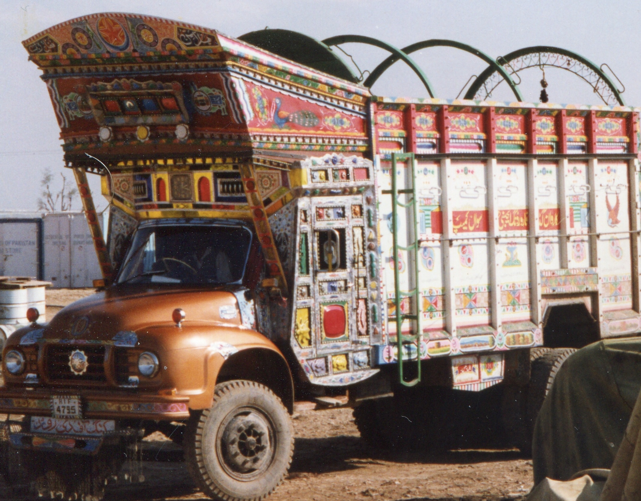 One thing that struck me as being out of character in this largely humorless place, were the buses and work trucks. Even the lowliest of them were fervently decorated – I’d not seen anything like this in any other country – they reminded me of the glitzy decorated tin boxes I bought in Marrakesh, only these “boxes” were on wheels and weighed tons.