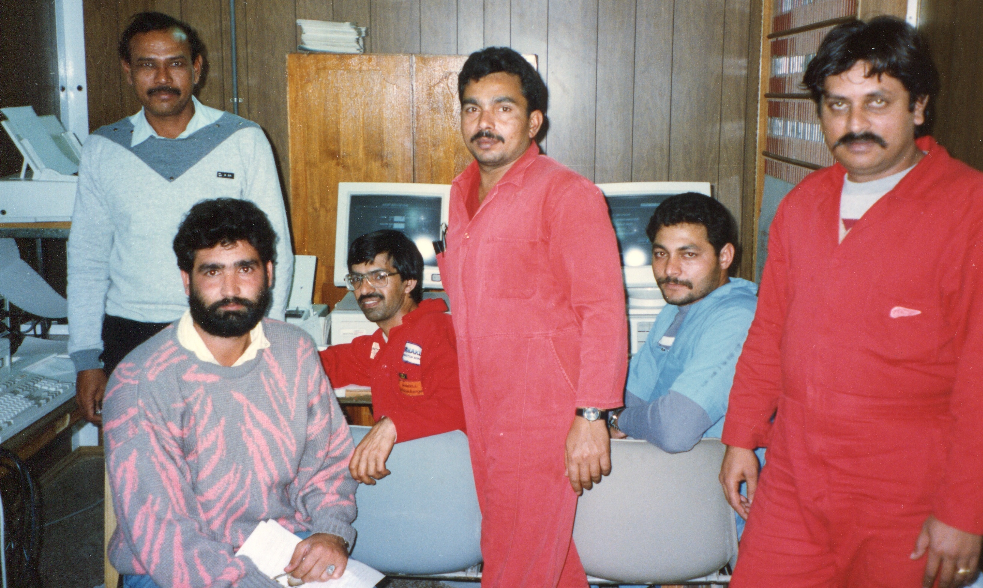 Pakistani warehousemen I trained in 1991: Shahid, Lazarus, Altaf, Mansoor, Mohammed and Paul on Rig 15. Paul was from Karachi, in the south of Pakistan, “a real city of educated people”, he told me, “You must visit me there one day to drink a beer together.”