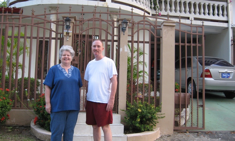 Cyndy with her old friend Jim outside his house in Diablo, Panama
