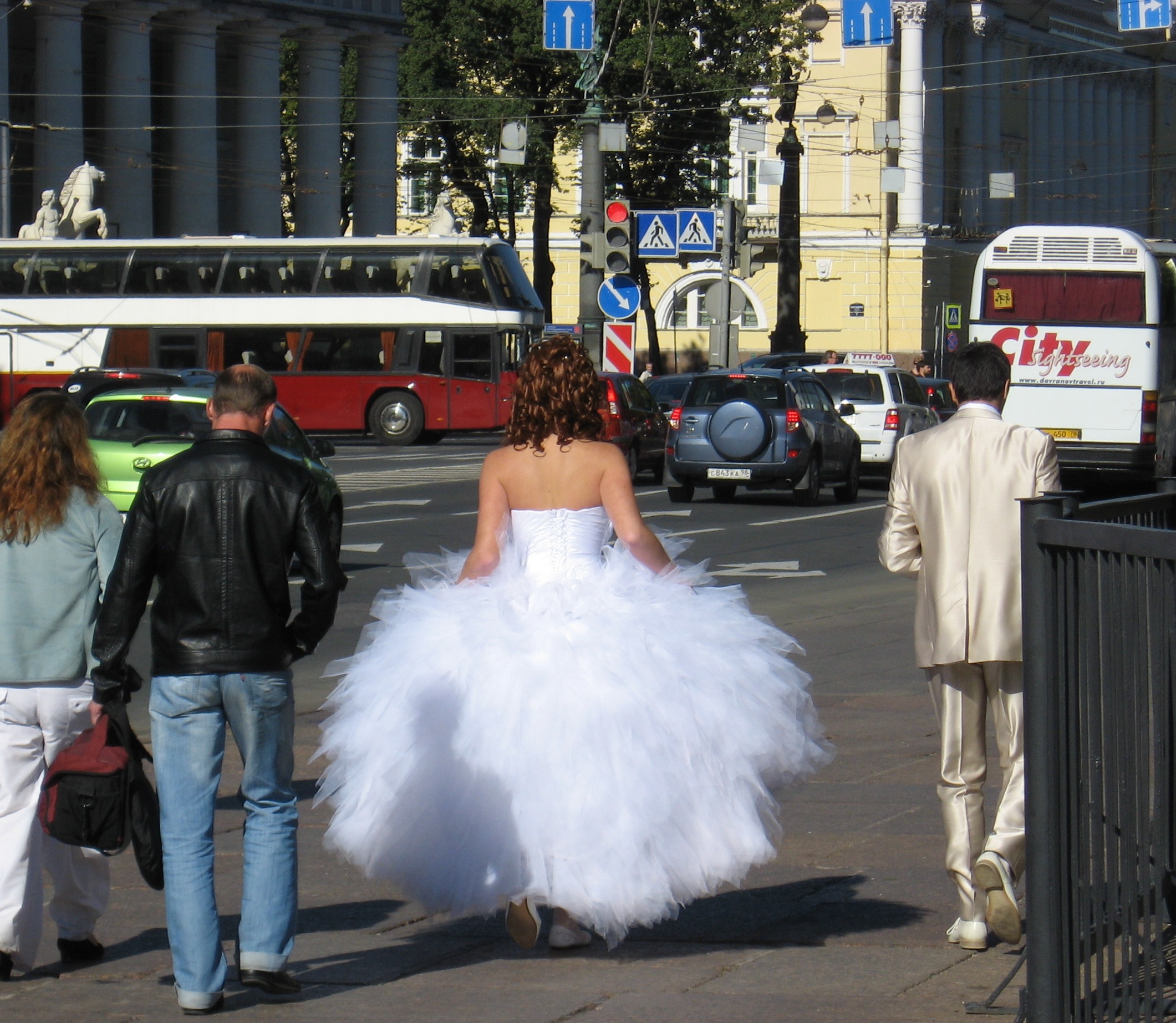 I tired of walking the many halls of the museum, and decided to head back towards my hotel for lunch and a rest. I passed the enormous Isaac Cathdral, where I saw a bride run across the street.