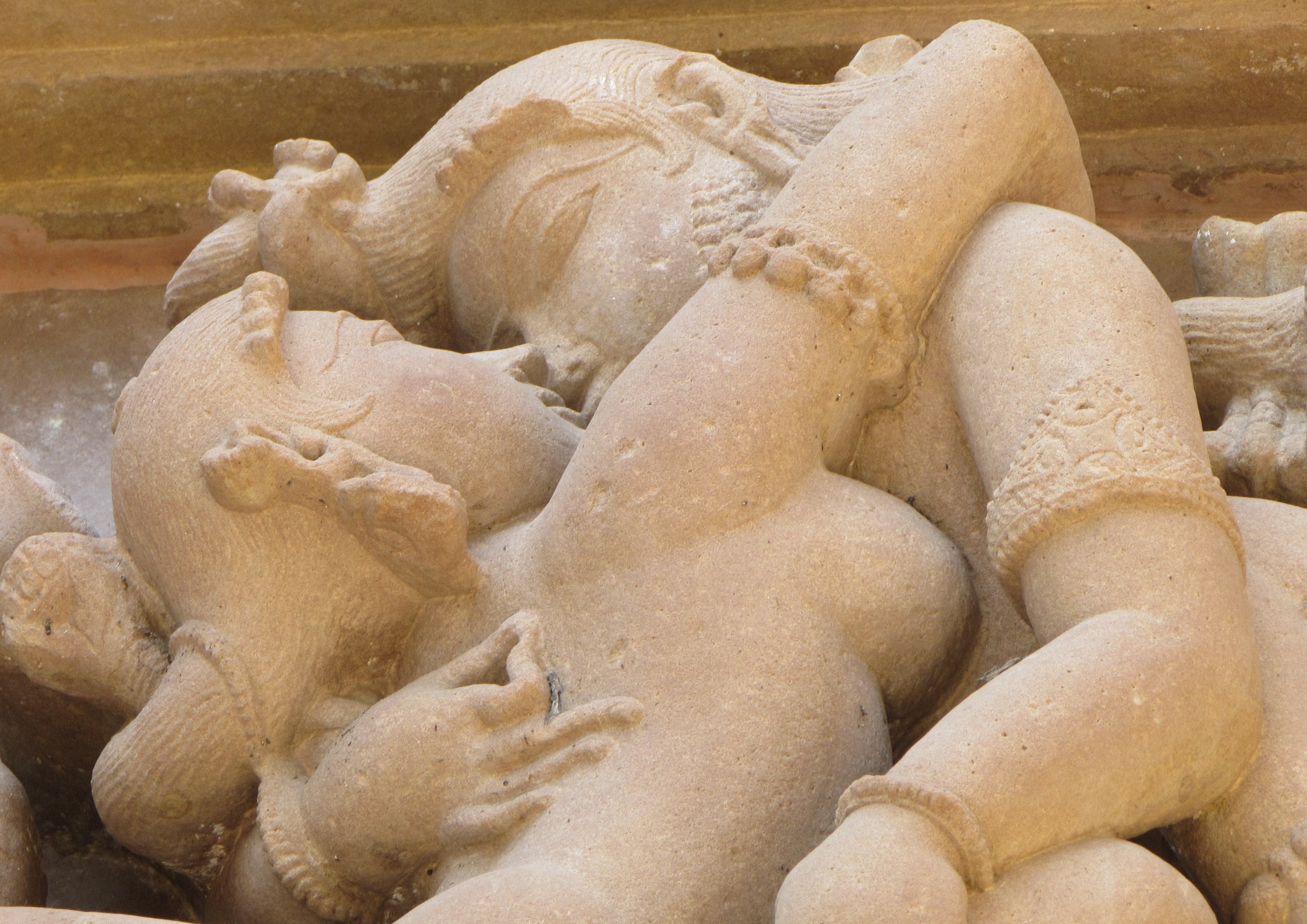 On the plane from Varanasi to Khajuraho, a town famous for its ancient erotic temples, I still struggled with what that goat meant when it spoke to me my last day in Varanasi. (For those of you who may have missed the story – I was walking along the ghat when a goat on the roof of a small temple neighed at me in an old woman’s stutter, “Never.”) Why a goat would single me out to speak its first word was a great puzzler. If it was God (whose, Christian or Hindu, I don’t care) speaking through the goat, then the word struck me as rather pessimistic. I mean, there’s always a possibility, no? Thinking about it though, perhaps at that moment on the ghat, as I sidestepped cow poo and buffalo giant poo, I was asking in my heart for God to speak to me, to which he replied through the goat “Never.” But the fact that he said something to me answered my prayer. But was it his intent? I just wish he’d said something more promising, like “Hang in there, Ray. There’s always a chance.” Now if it was the Hindu God speaking and not the Christian God, there are more ways to look at “Never.” Because Hinduism teaches that all things are temporary and what is “Never” today could be “Forever” tomorrow. So that would be OK – in the future God and I may have wonderful chats about creation, even laugh over that one time on the ghat at Varanasi when he had the goat tell me “Never.” Or perhaps I misunderstood the goat? Perhaps he wasn’t even speaking English? But let’s move on, the plane has landed. Khajuraho is a small town with its own airport for the tourists, who flock from France mostly (of course) to see the erotic carvings on the outside of 1000 year old temples. Yes while the French were busy building the impressive Christian vaults of Notre Dame around the year 1000, the Indians were busy building and carving impressive Hindu temples with a few erotic carvings thrown in for some good reason that no one knows anymore.