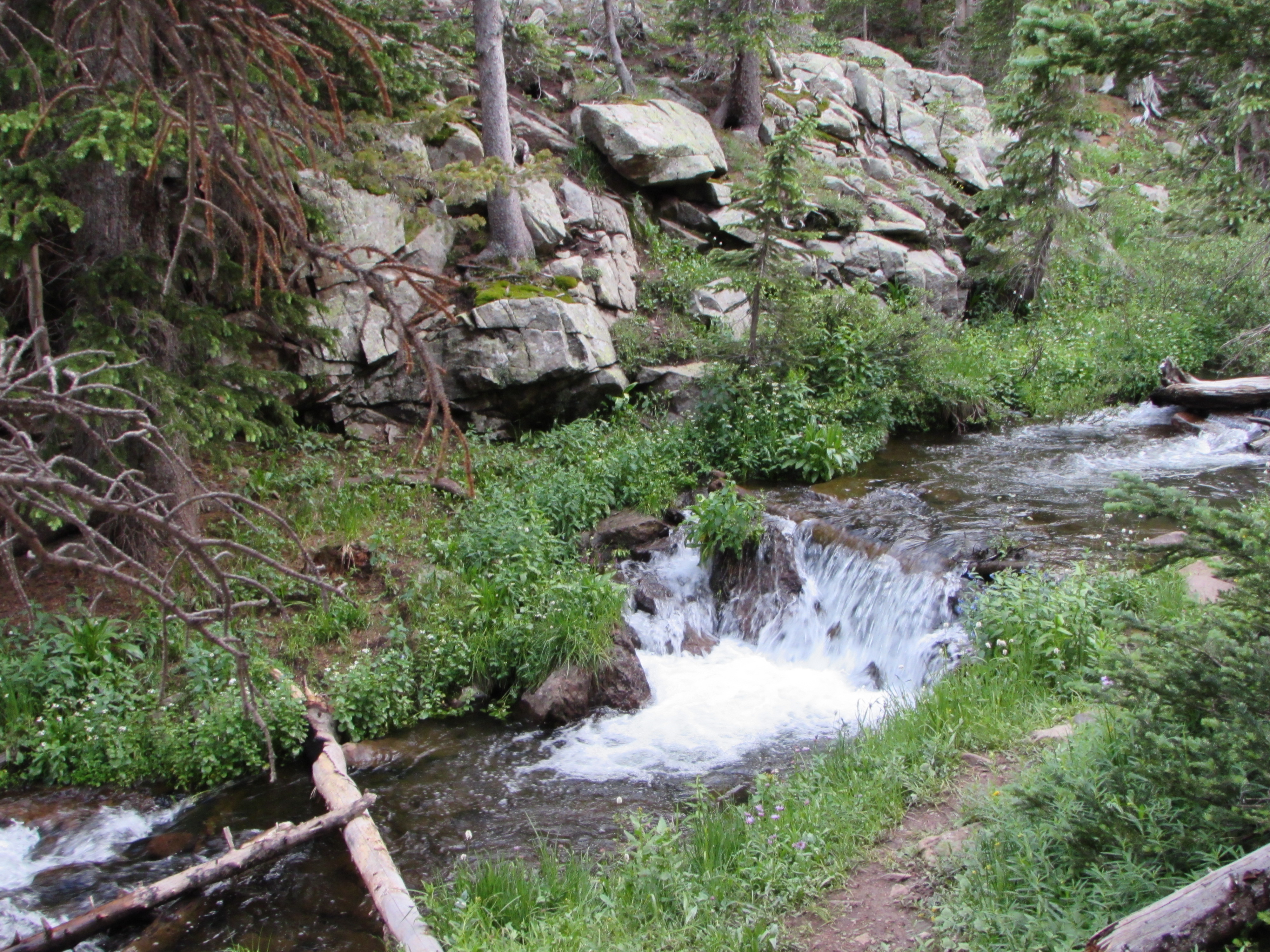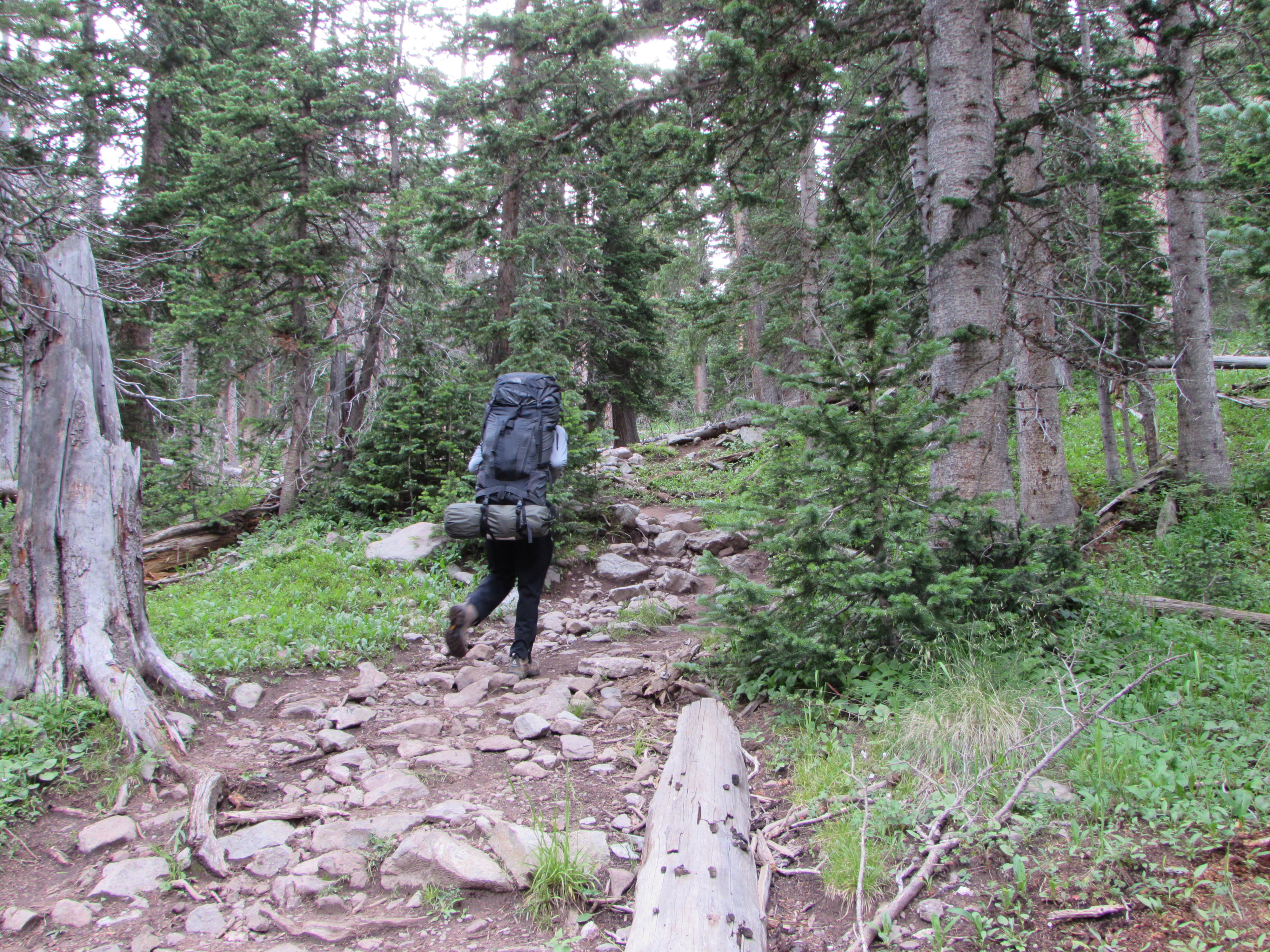We cut 3 miles off the uphill hike this year by driving up a 4 wheel drive only road, a nasty, kidney busting half hour in my colleague Pavel’s son’s jeep. From this upper parking lot, we hiked through forest for 3 hours to our campsite next to a stream near the lower lake.