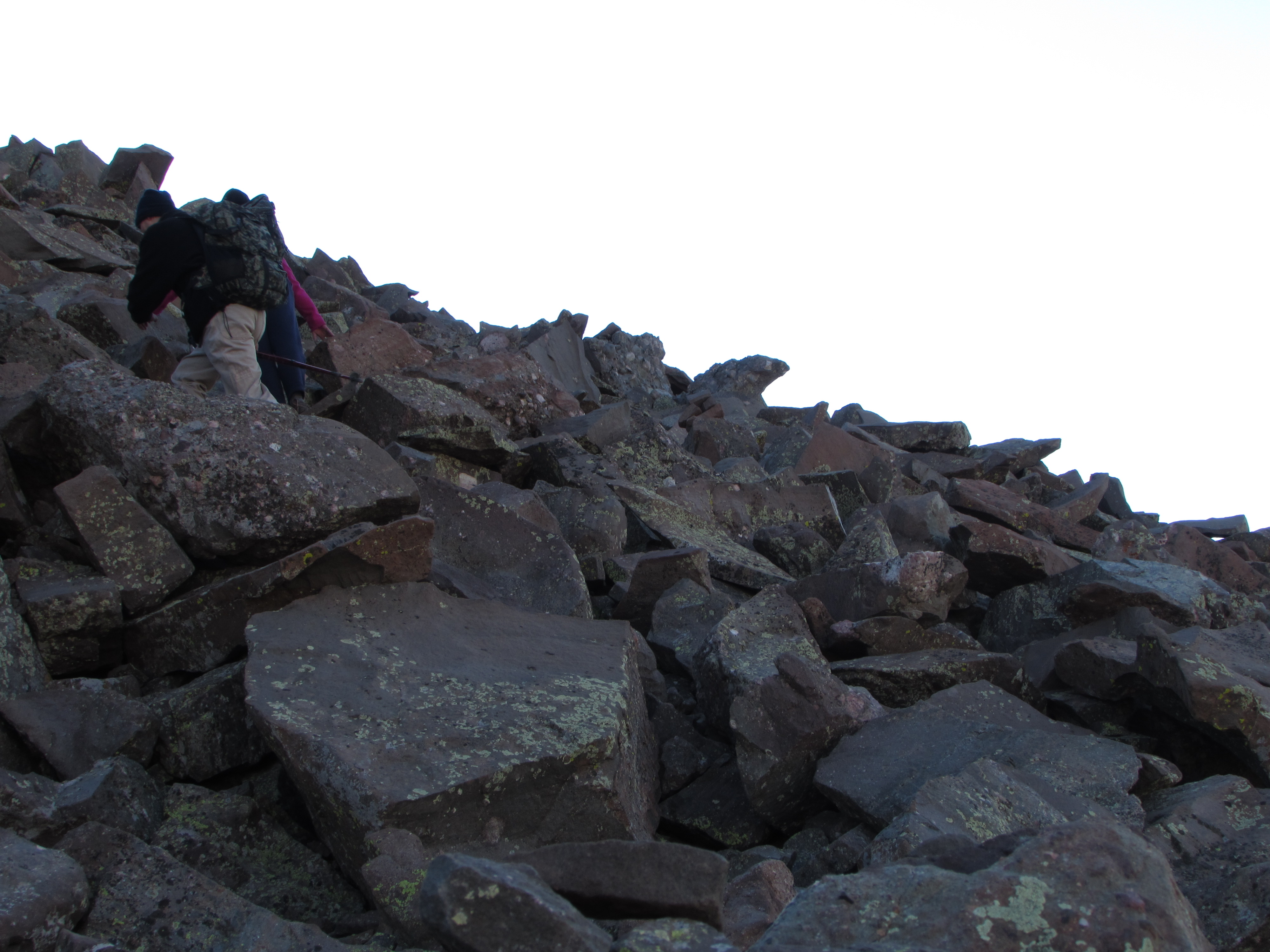 In 2013 I failed to reach the summit of Mount Humboldt. I became too winded – I hadn’t stayed at altitude long enough, failed to acclimate, before attempting the hike, so I was not able to breathe in enough oxygen for my legs and lungs and my heart which drummed fearfully in my ears. I waved the boys on and simply took pictures down below that year. So when I was invited to attempt the hike again in July of 2014 by my colleagues in Colorado, I jumped at the chance, but with better planning. More time at altitude before the climb, lighter shoes, hiking poles, and too I knew better what to expect and how I should pace myself.