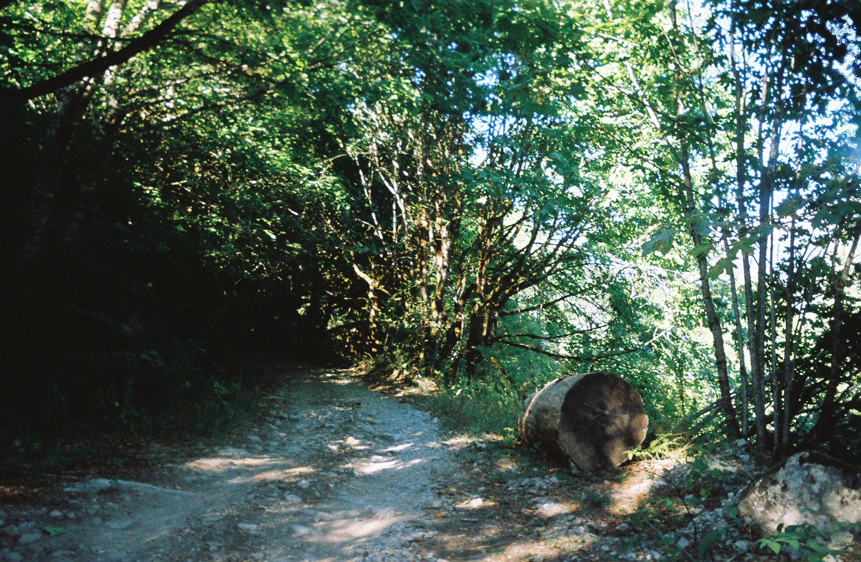 After another 6 miles I reached Dingford creek and waterfall, and took a short break. It was 8am and I needed to arrive at 9 — I had another 6 miles to go so I thought I would be on time. The road narrowed and worsened — I passed several washout areas where the logging company had dumped in fistsized boulders to keep the road passable. On my right no shoulder existed — only a dropoff of several hundred feet. On my left the mountainside. Over me the trees formed a canopy of green. I drove on, 8:30, 8:40. I reached a steep, rocky incline, and thought — I’ve come too far, somehow I missed the stopping place. And anyway, I can’t go any farther on this bad road, so I might as well give up and head back.