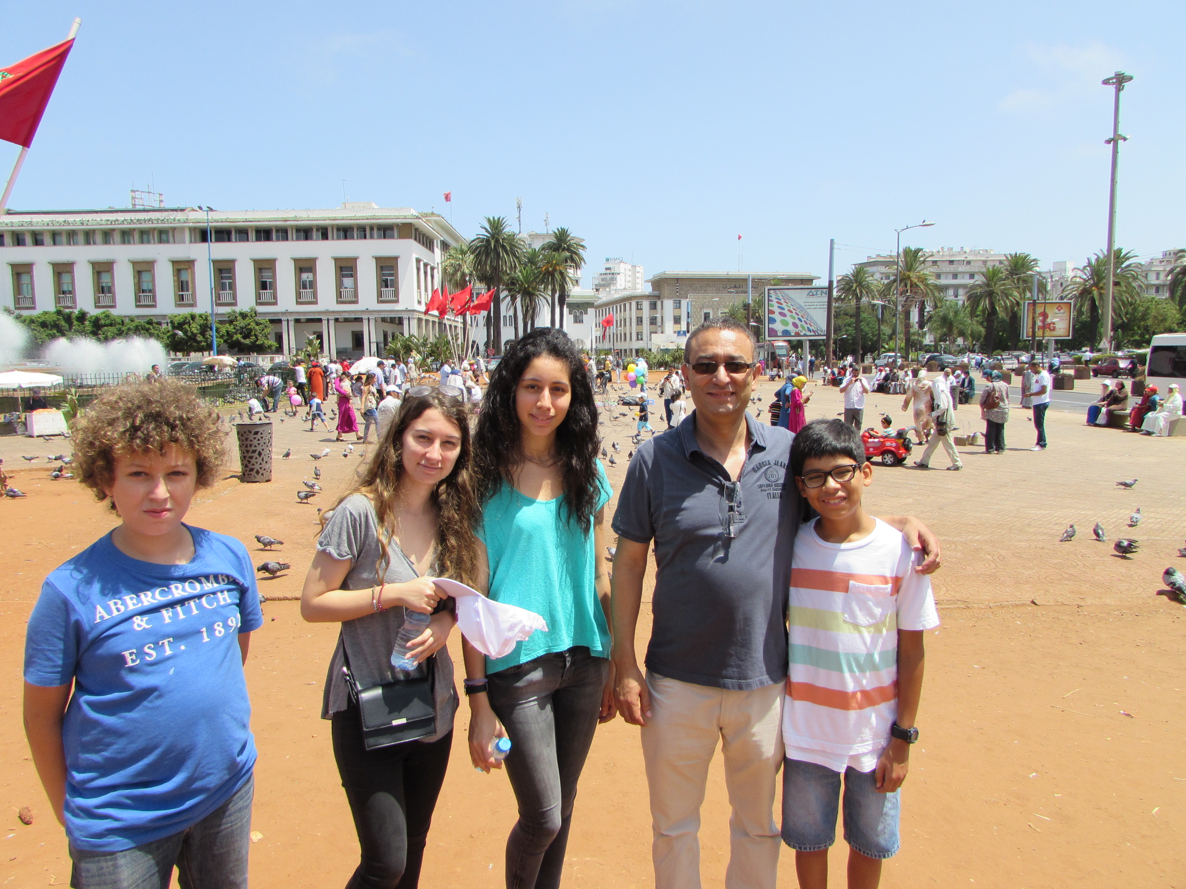 Downtown Casablanca with Ayman 14, Yasmine 17, Yasmine's friend also called Yasmine, my old colleague and friend Noureddine, and my grandson Andrew