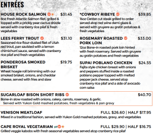 We hadn’t bothered to eat dinner because the North Rim Grand Canyon Lodge has a big restaurant. I had Andrew read me their menu as we got closer, my mouth watering.