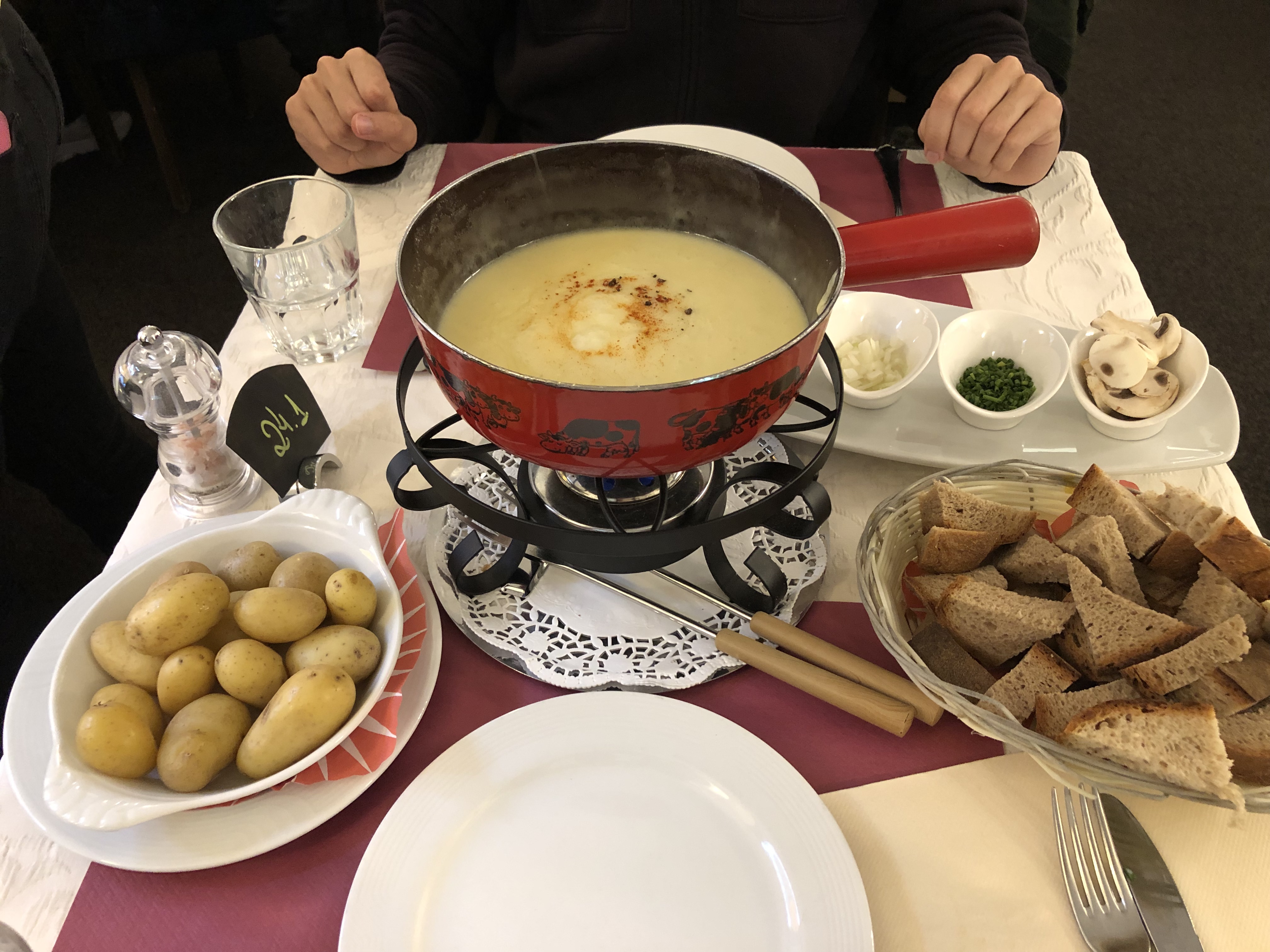 Of course, being in Switzerland, we had to eat the potato (yum) and bread (yuck) cheese fondue one night, which cost $70 for the two of us.