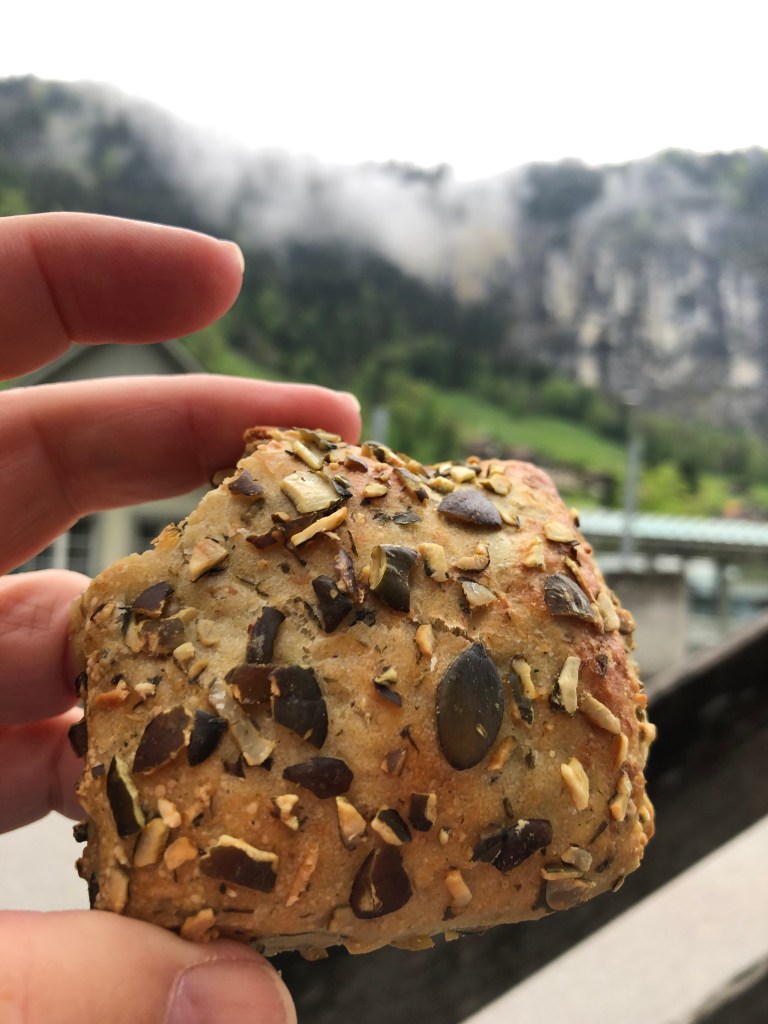 Whenever I visit a new town, I search out the best unique food – in Lauterbrunnen, for me, it was the pumpkin-seed multigrain roll from the Coop store – I ate one every morning.