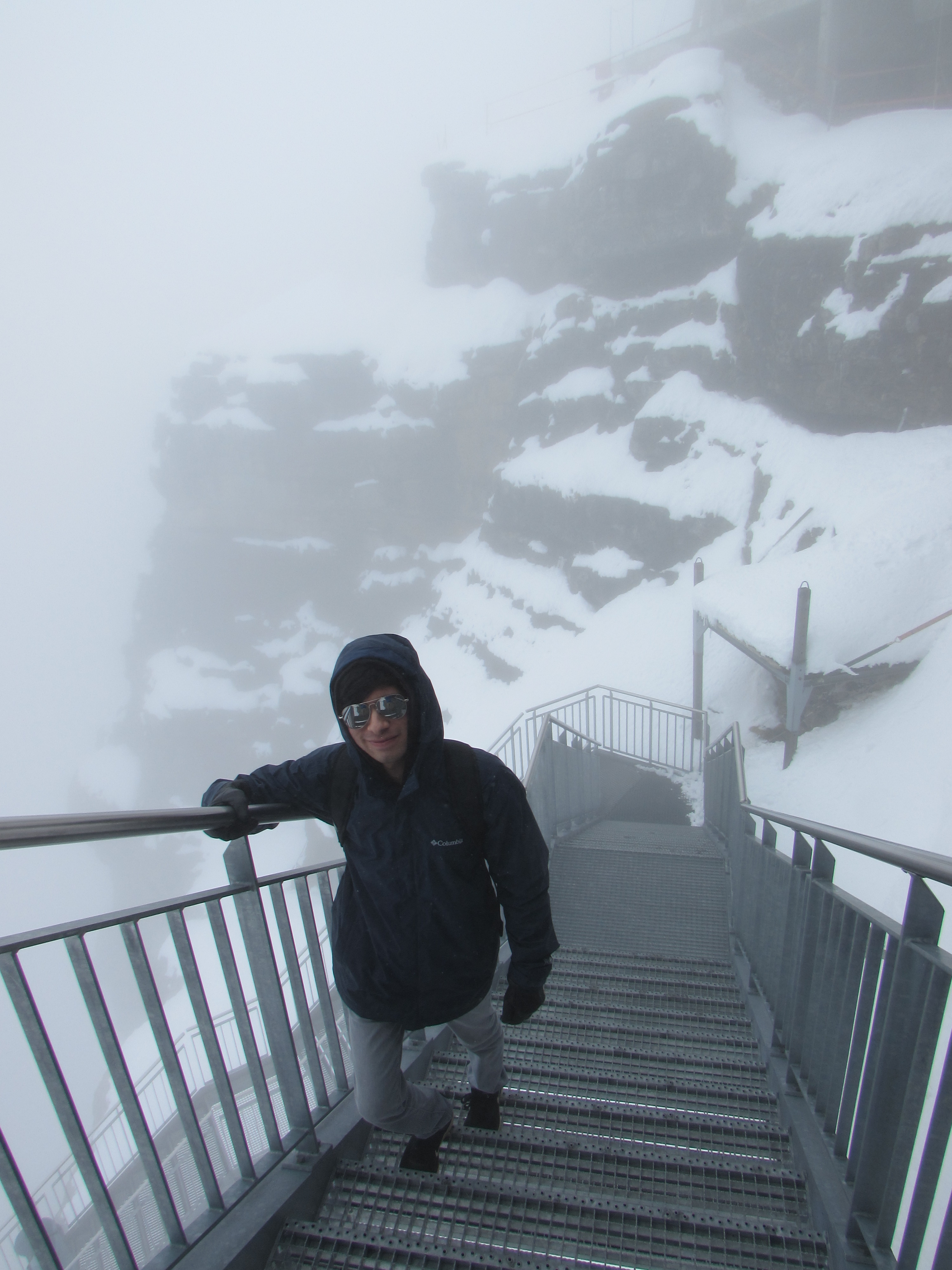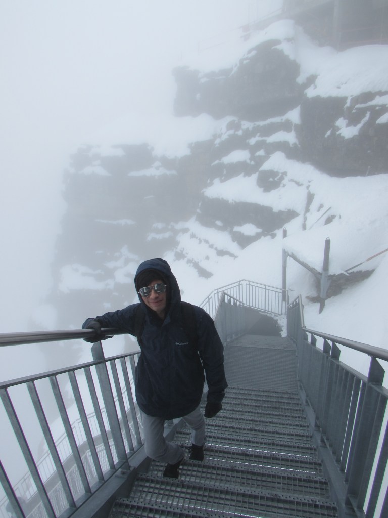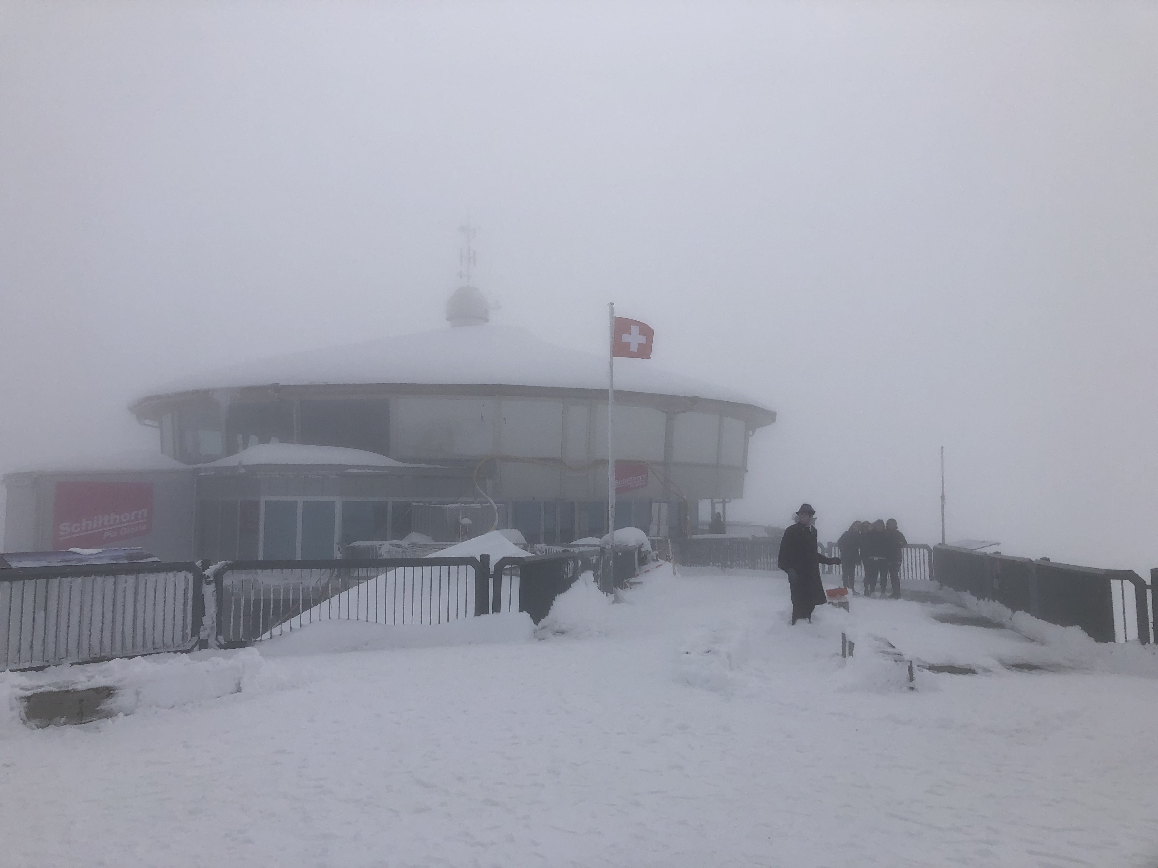 We took gondola after gondola after gondola to get to the top of Schilthorn mountain, only to be encased by clouds. We did get to walk half the Thrill Walk (the other half was icy and blocked off).