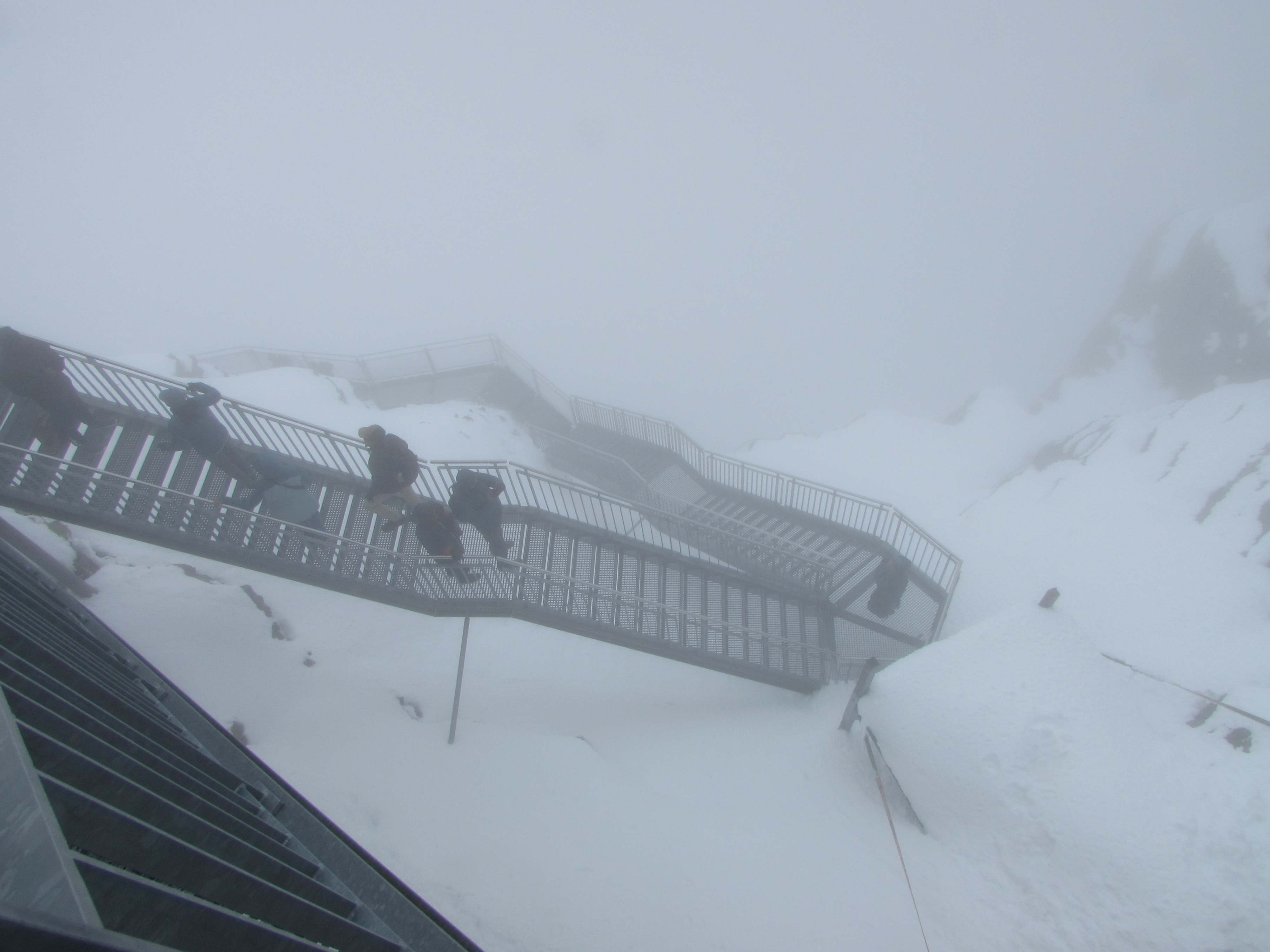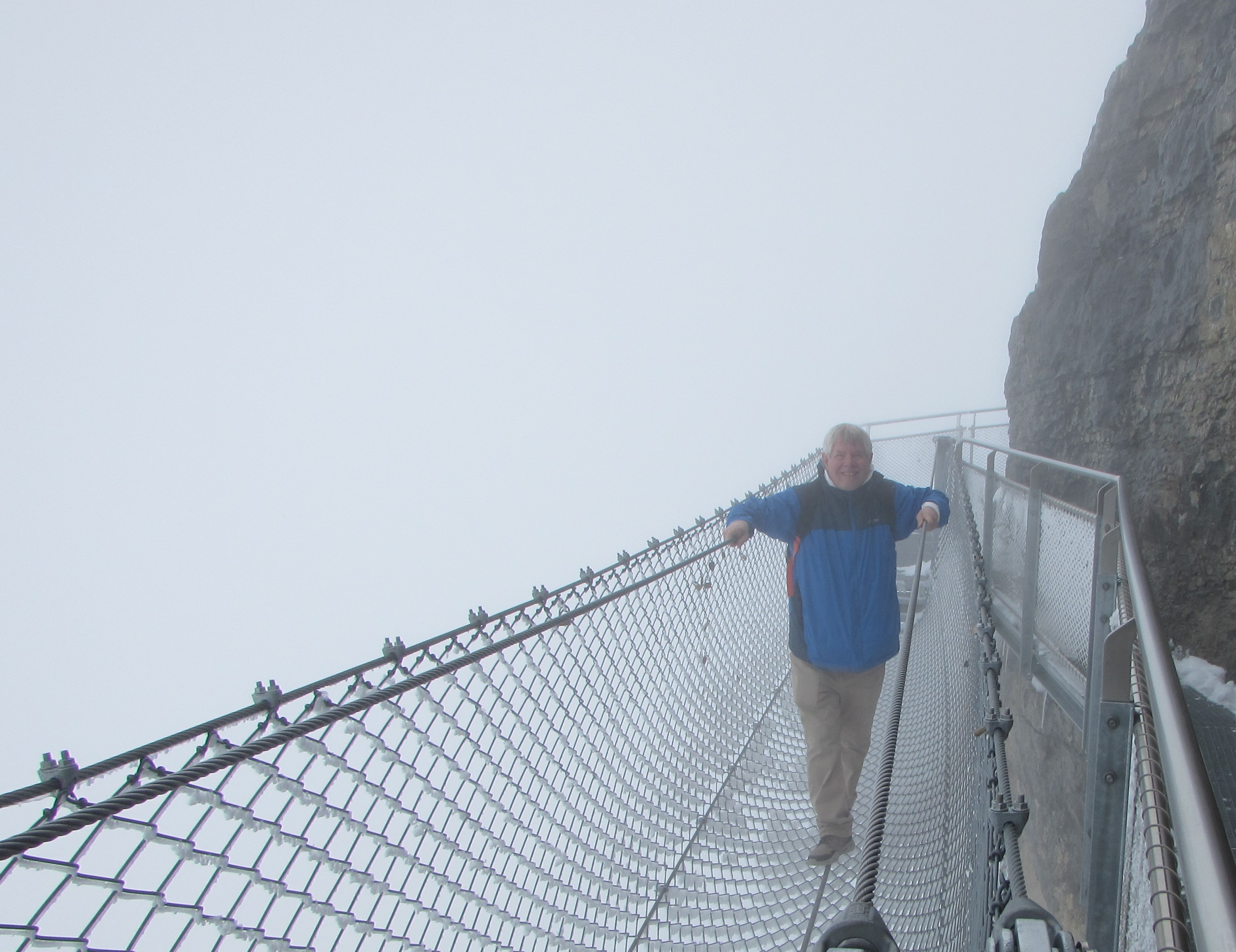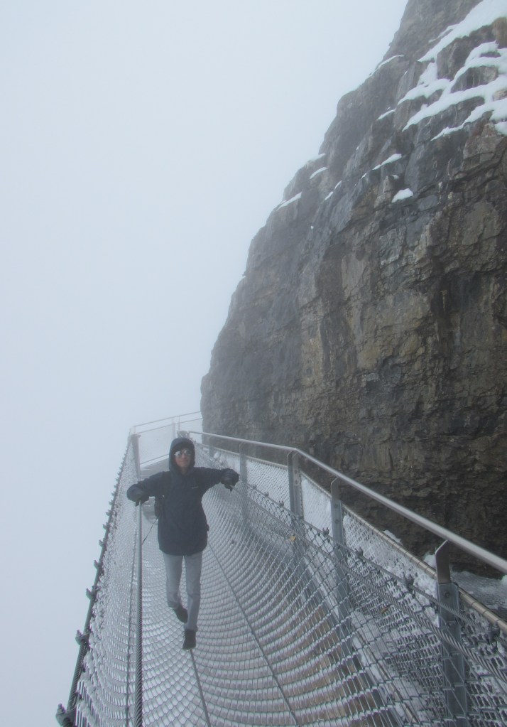 We took gondola after gondola after gondola to get to the top of Schilthorn mountain, only to be encased by clouds. We did get to walk half the Thrill Walk (the other half was icy and blocked off).